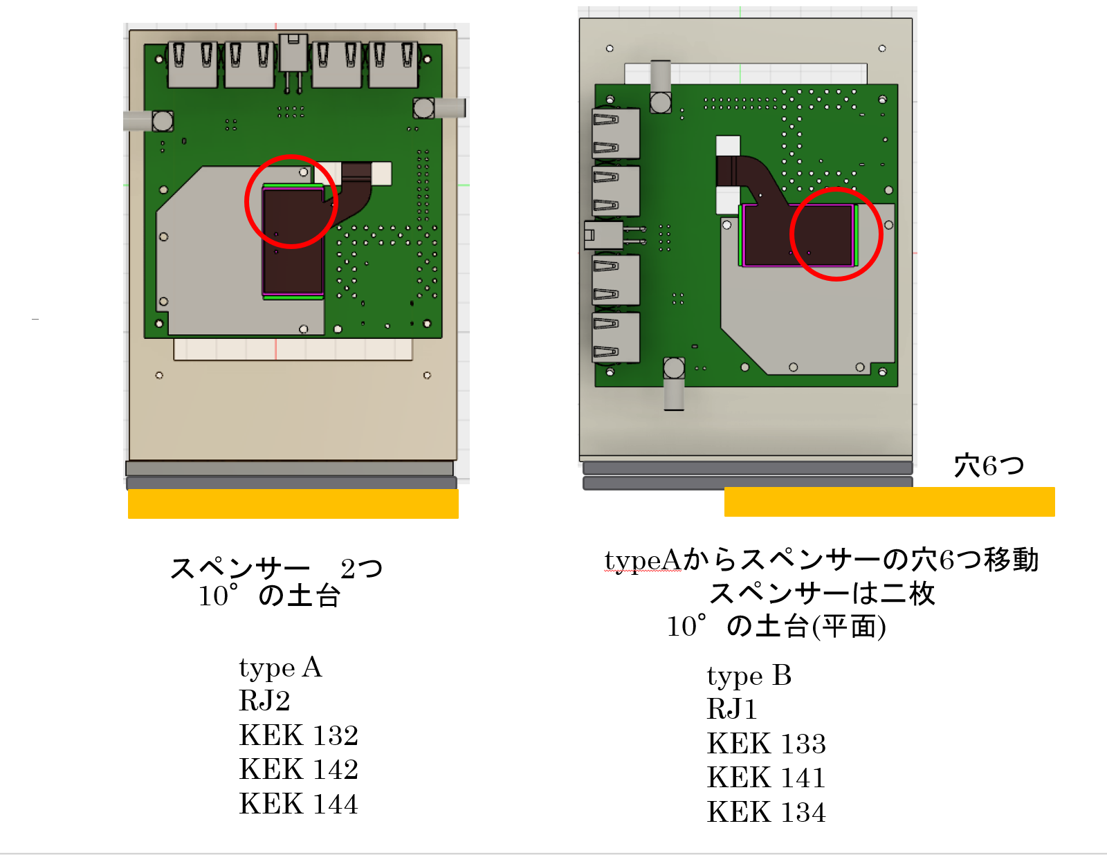 SVXの傾きは全体図にある3DCADの絵ではなく、下図のように傾ける。ビーム方向をz軸とすると、x,y方向共に10°傾ける。