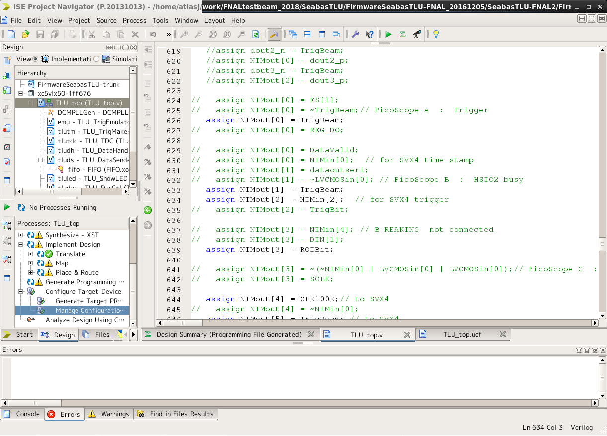 コンパイルは、ViewがImplementationになっているのを確認してTLU_topを選択。